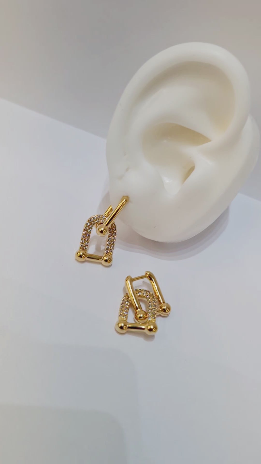 Com design em formato de cadeado e cravejado com micro zircônias, esse brinco une delicadeza e estilo em uma única peça — perfeito para dar destaque ao visual.