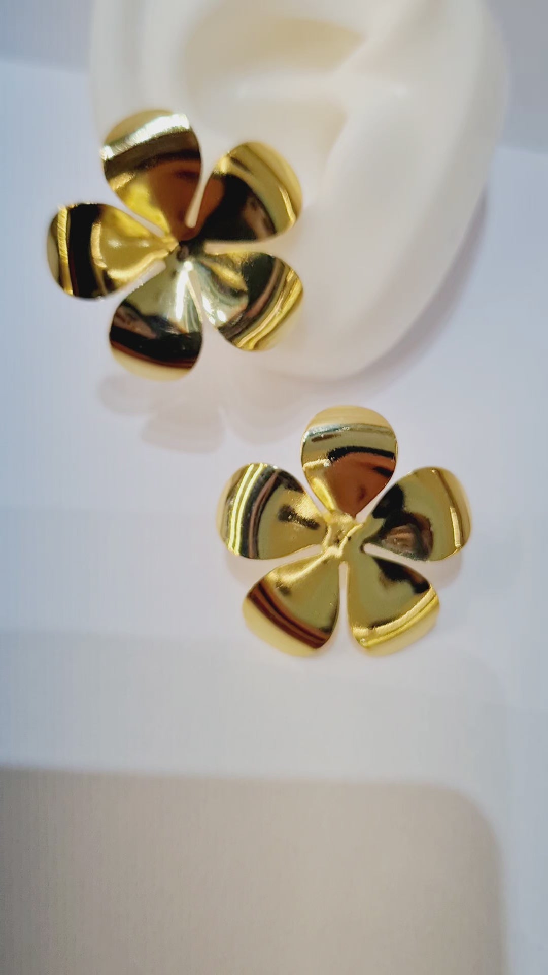 Com design floral de cinco pétalas e acabamento espelhado, esse modelo traz leveza e elegância, perfeito para realçar o visual com charme e feminilidade.