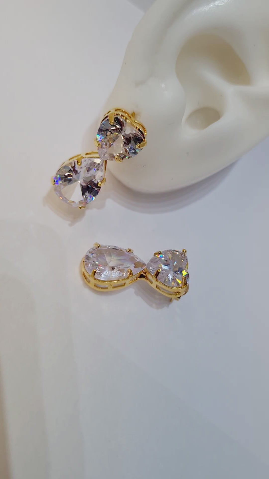 Com pedras lapidadas em formato de coração e gota, esse brinco traz sofisticação e destaque para qualquer look. Ideal para ocasiões especiais ou para dar um toque de glamour ao dia a dia.