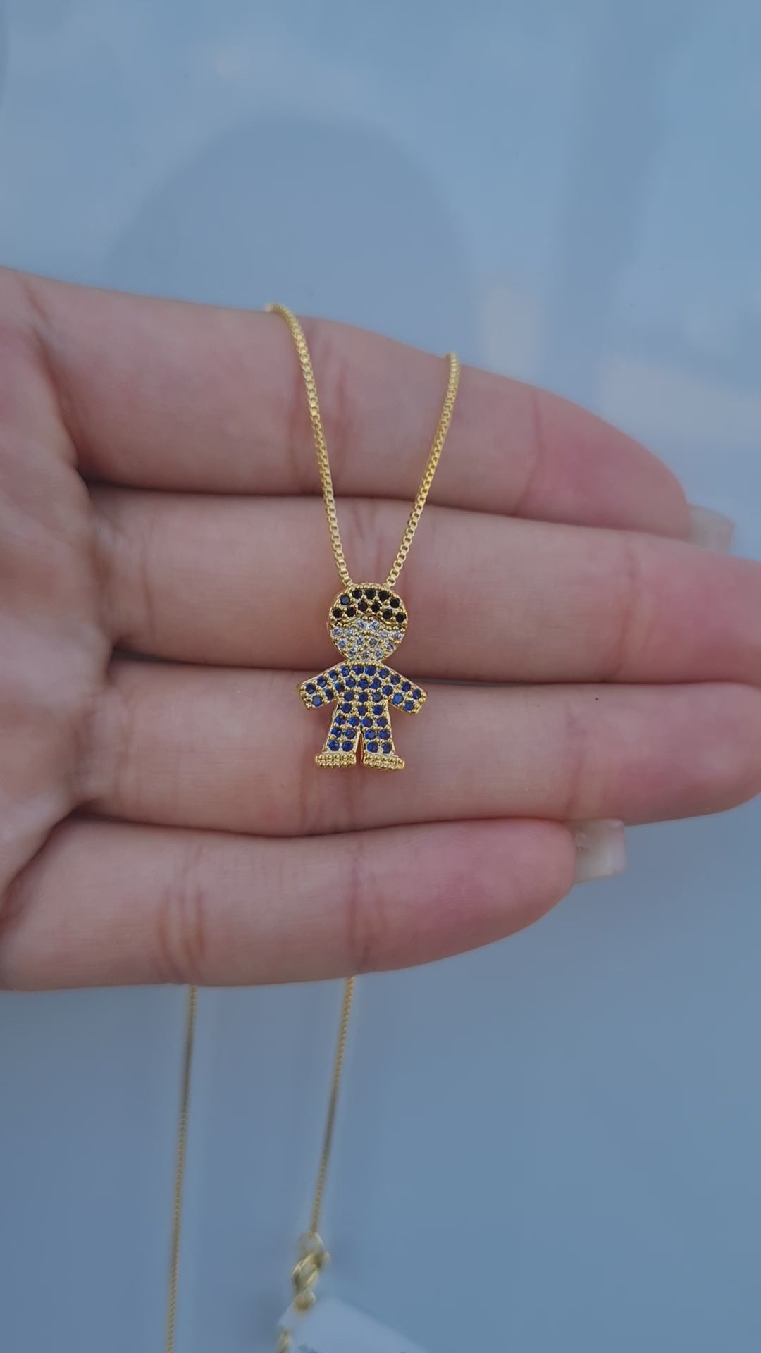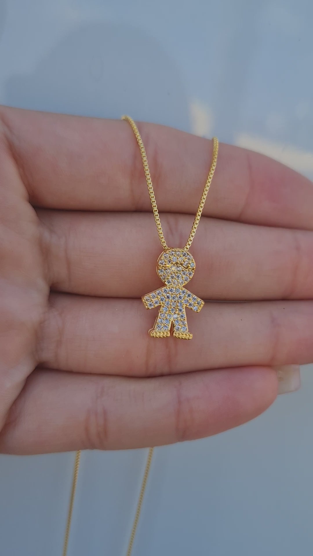 Esse pingente em formato de menino representa amor, conexão e momentos especiais. Cravejado com zircônias brilhantes, possui banho em ouro 18k, garantindo muito brilho e elegância. Disponível em duas versões: