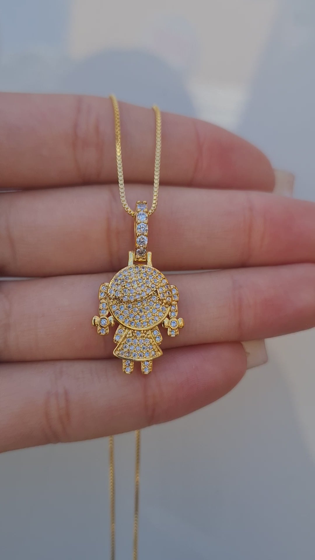 Esses pingentes em formato de menino e menina são totalmente cravejados com zircônias, trazendo um brilho intenso e sofisticado. Representam amor, família e laços eternos — perfeitos para quem deseja carregar no peito quem ama.